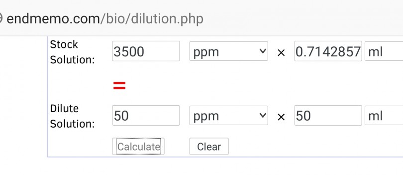 Here's the ENDMEMO dilution calculator again to show you how to easily do the calculation.