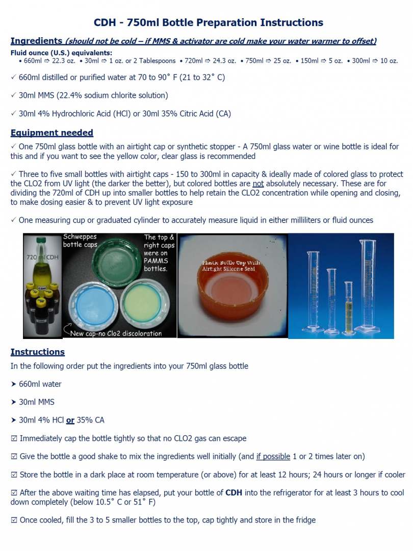 - Every ml of CDH contains 1 drop of MMS, so 1 drop of MMS = 1ml of CDH