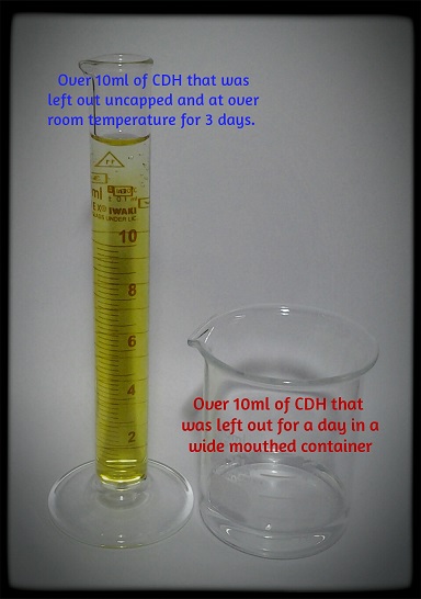 225ml of water + 10ml of MMS + 5.0ml of 4% HCl = 240ml of CDH-1 made with 2% HCl
