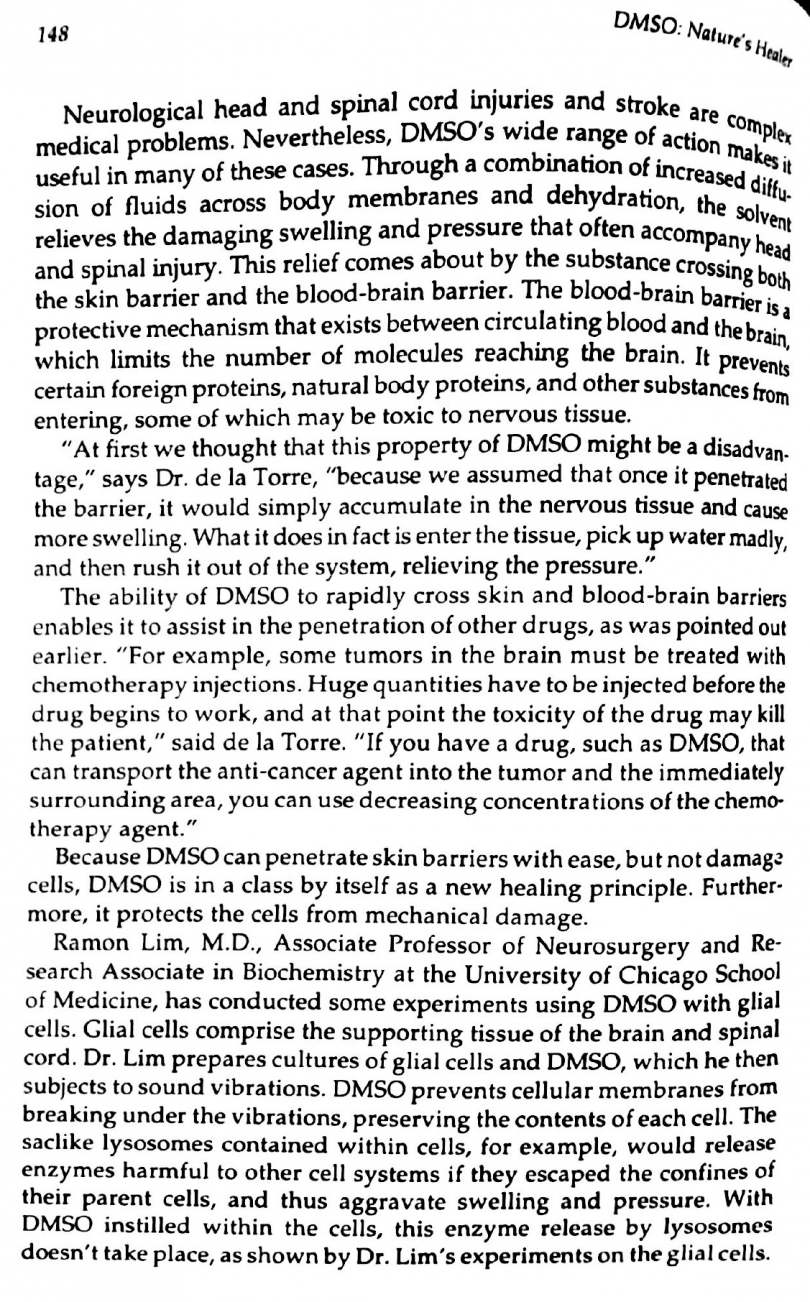 Please read the following information about using DMSO to target cancer cells in the body. Also DMSO does cross the blood brain barrier and it is very good at picking up excess fluid in the brain and carrying it out.