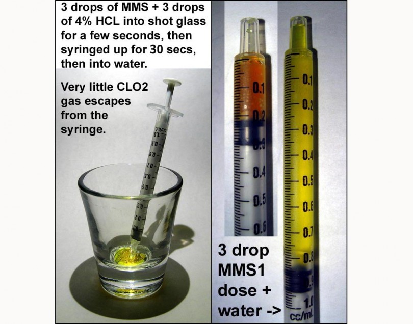 method of making CDS . however as i understand CDS exists in water below 11*C so is it possible for me to capture the gas in the syringe , than inject it o a spray bottle with cold distilled water and quickly close the cap ? do i have to store such prepared spray in the fridge in order to make it effective (will the gas escape from the water into the empty space in the bottle ? and what about the remaining "amber liquid" in the syringe. does it have any oxidizing / beneficial properties ? or is it just waste ? is CDS stronger then MMS (as no gas escapes vs open glass an 40second activation)