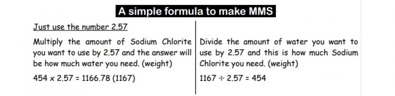 Your MMS recipe is off a bit from Steve's formula shown above. 1/3 cup of water is 79 ml or 79 grams. Using the formula that would result in 31 grams of NaCLO2.