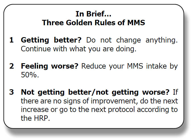 Again, follow the Starting Procedure before starting Protocol 1000. Please note that it is not necessary to reach 3 drops/hour of MMS1 if your health problem is resolved.
