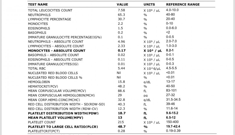 MY PLCR, PWD and MPV are above what the normal ranges are.