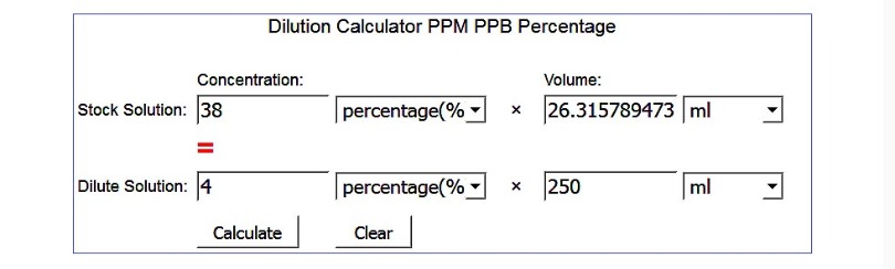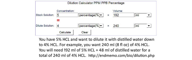Here is an example on how to dilute HCL down to 4% HCL: