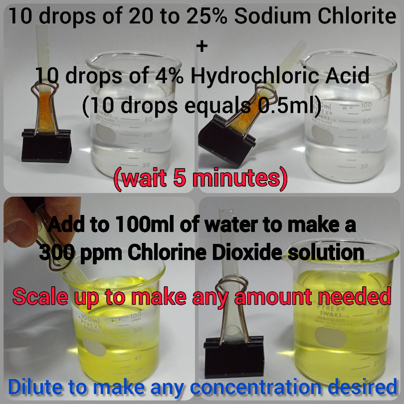 - The Antidote (1ml of 30,000 ppm CLO2) plus 100ml of water will give you 100ml of 300 ppm CLO2