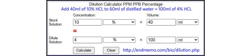 Replied by CLO2 on topic How to make 4% hcl solution from 10% hcl?