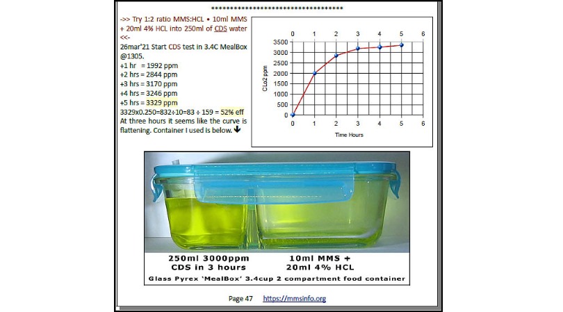 Jim, the secret to making 'Quick CDS' is a reactor solution depth of 2mm or less. The deeper the reactor solution the longer the activation time and the lower the efficiency. There are other factors such as the amount of air space in the container. There are better containers than this one, but this 2 compartment bento box is easier for most people to use. Measured efficiencies between different types of containers vary from about 40% to over 70%.