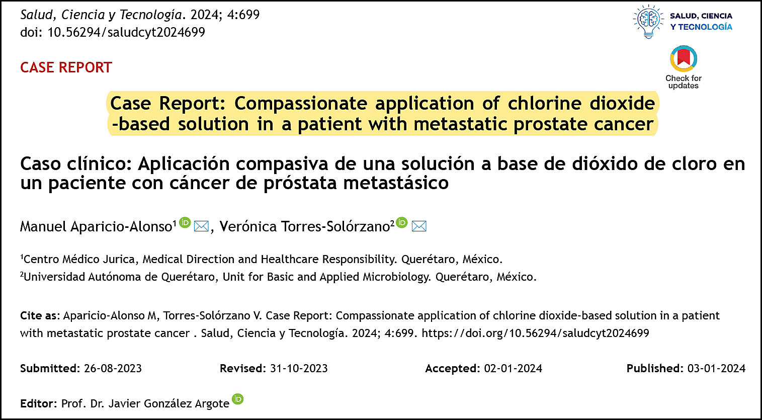 Application of a chlorine dioxide-based solution in a patient with metastatic prostate cancer