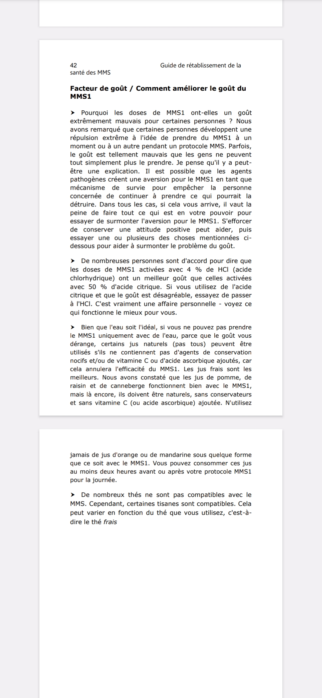 J'ai utilisé la même technique que vous pour me boucher le nez et arrêter de respirer afin de poursuivre la procédure. J'ai commencé par la procédure initiale, puis j'ai suivi le protocole champignons pendant deux semaines, puis le protocole 1000 pendant trois semaines. À partir du protocole 1000+ avec le DMSO, ces sensations ont commencé à diminuer. J'en suis maintenant au protocole 2000, avec MMS2, et toujours une goutte de MMS1 et trois gouttes de DMSO