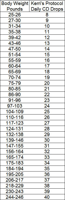 Hahaha, I just realized that Greg's dosing table and Kerri's dosing table are almost exactly the same! And it was you and I who helped Kerri to make her dosing table for her book. So Greg is using the dosing table we made for Kerri and changing the number of doses per day to 4 large doses after the beginning period instead of 8 to 10 doses.
