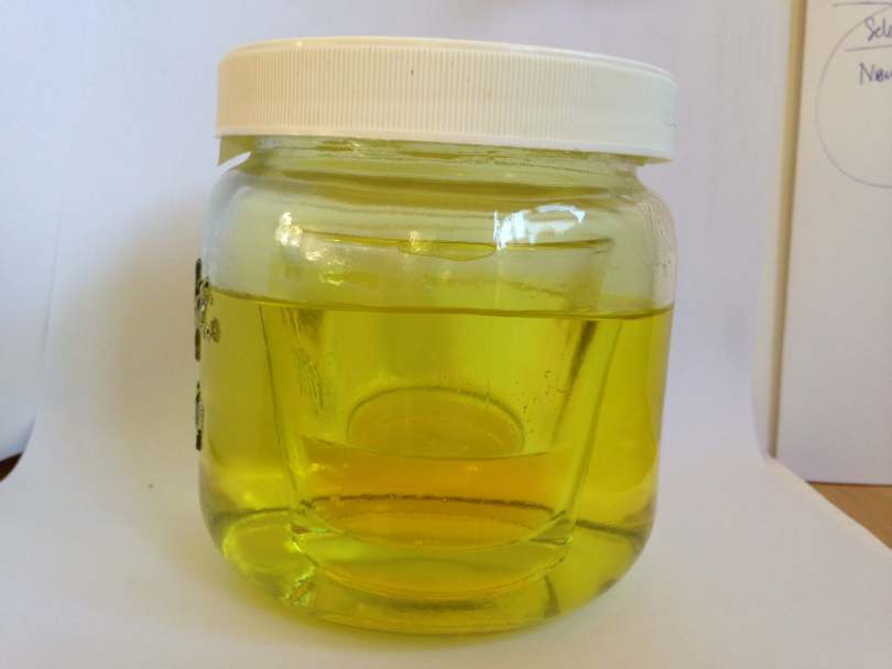 The photo makes the reactor liquid look orangey but in reality it is quite yellow.