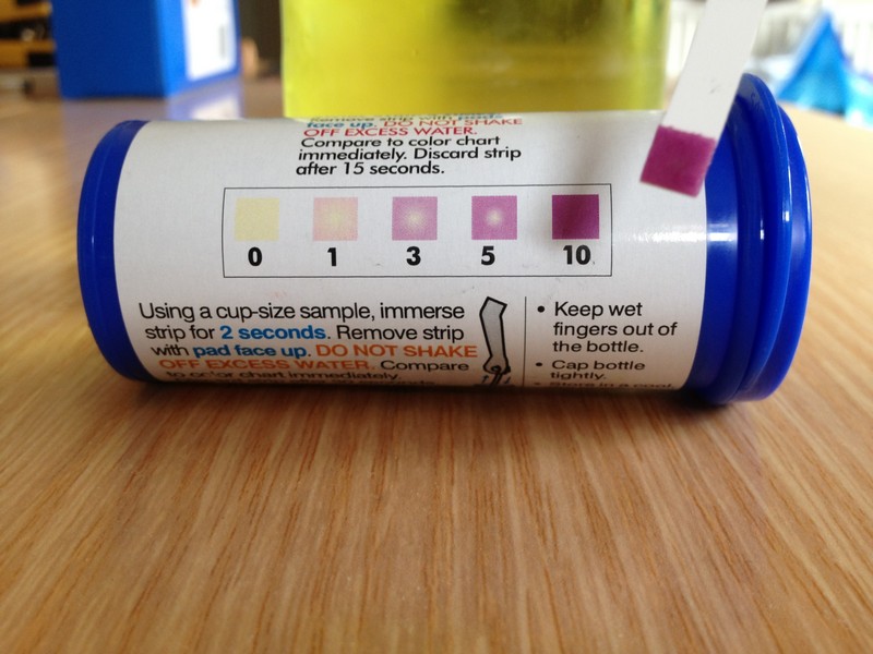 Maybe one of the math wiz guys or gals can suggest the size of dilution to use the 1-10 strip. My guess is that it's going to be big - the testing method on the 3000 ppm/L gives you 8 ppm per drop equivalent - so you're going to need to test for 1 drop equivalents on the 1-10 testing strip. (and I have 2 containers of the 1-10 strips here, too, before I realized I needed the wider range
