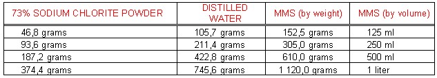 Hello, My Sodium Chlorite is 73% pure, what would be the proper mixture for making MMS1, Thank You, John