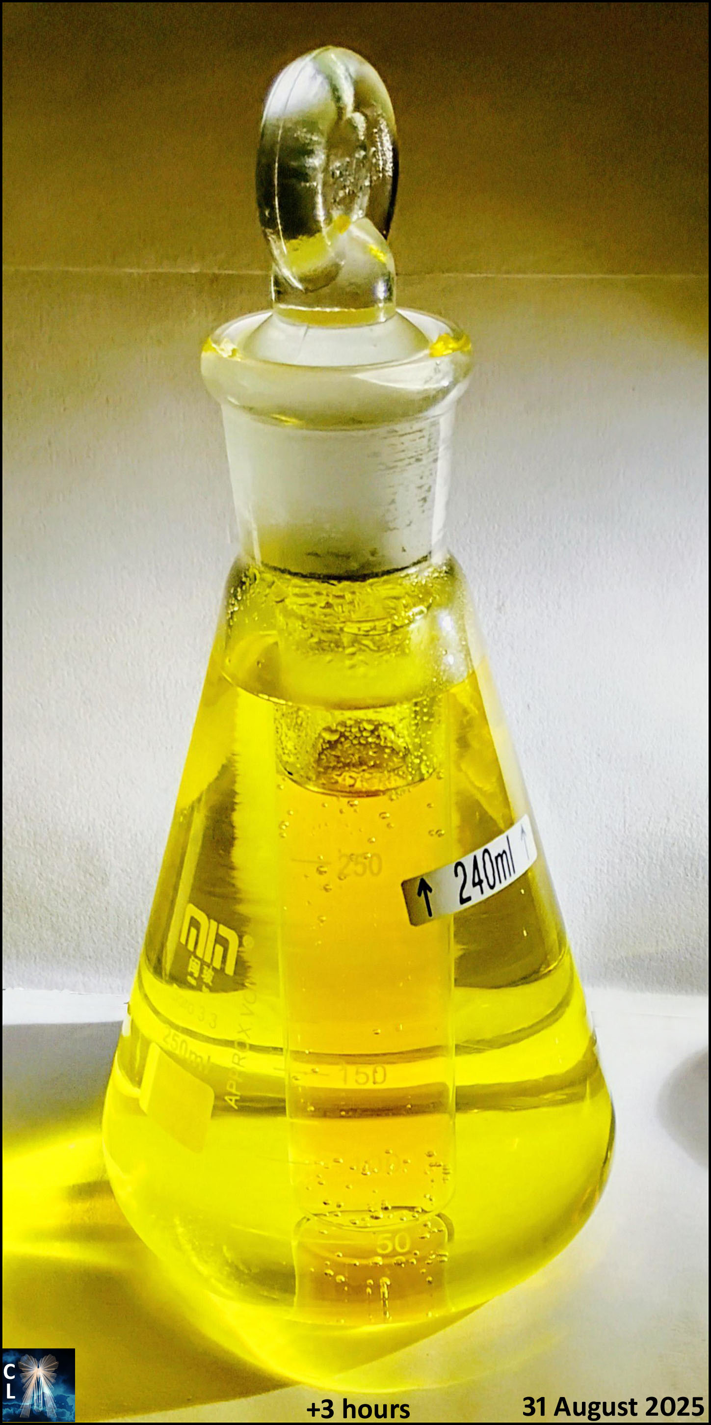 Test #2 for this 250ml flask. Same recipe as before. Measurements will be taken later.