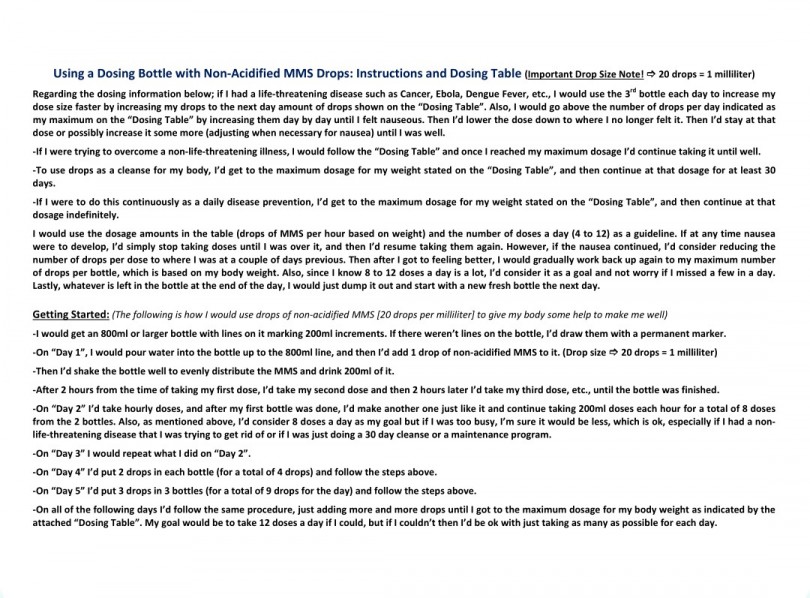 Yes that's so true CLO2, people really need to read the protocol directions carefully. For example Greg's protocol says to start with 1/4 the drops to begin with and to only take them in the evening just before bed. He goes on to say to do that for at least 2 weeks before moving on to taking the full amount (based on body weight) daily. So for me it would be 36 drops divided by 4 = 9 drops per day (in the evening and for 2 weeks). Then, one should not be experiencing any nausea during this 2 week period before moving on to the full drops per day dosing.