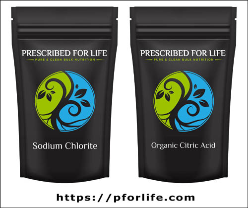 With those you could make small batches of 22.4% sodium chlorite solution (SCS) and 35% to 50% citric acid solution (CAS).