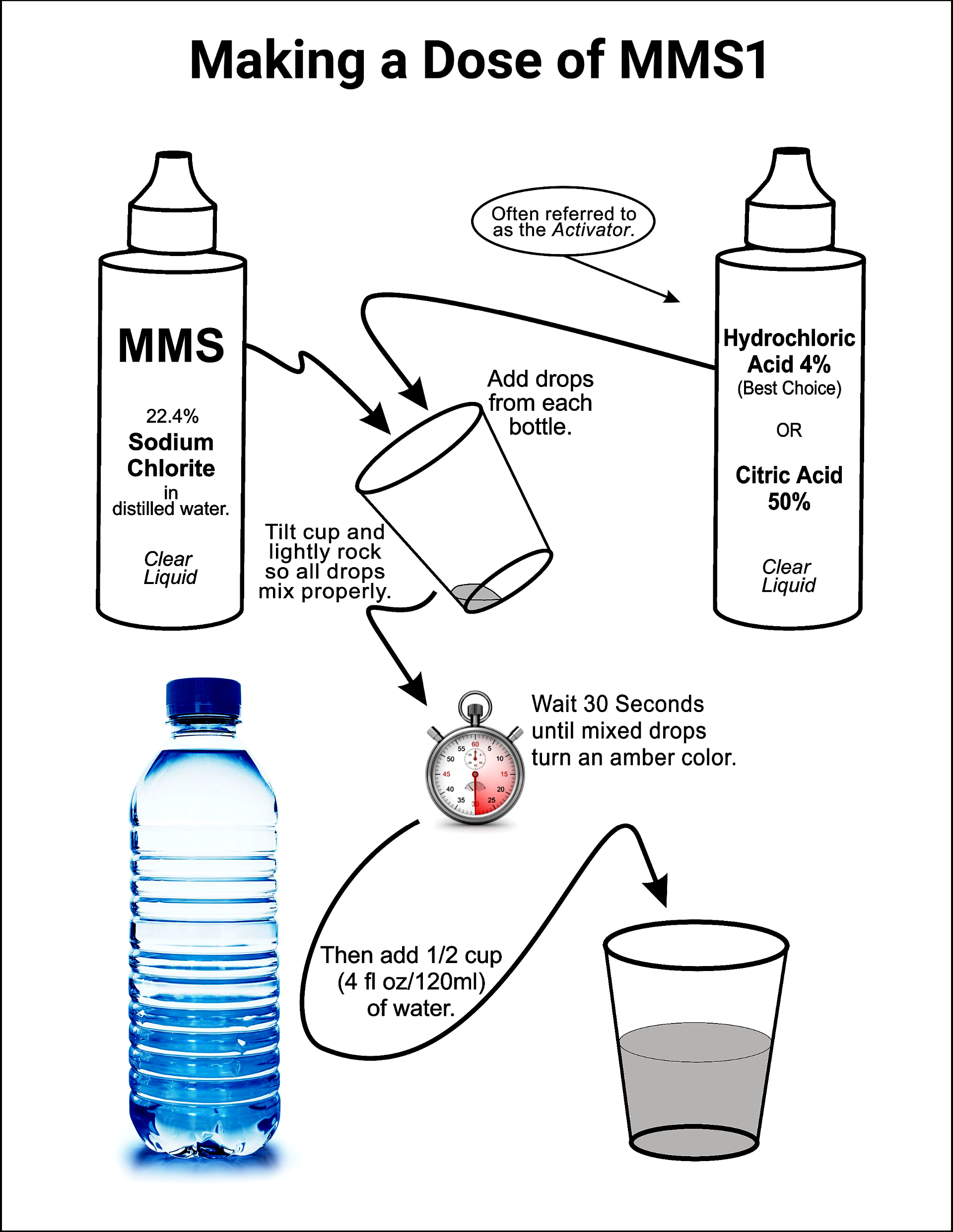 The next MMS1 protocol is Protocol-1000, which has a maximum hourly dose of 3 drops. Below is the basic method of making a dose of MMS1 if you did not see it in the Guidebook.