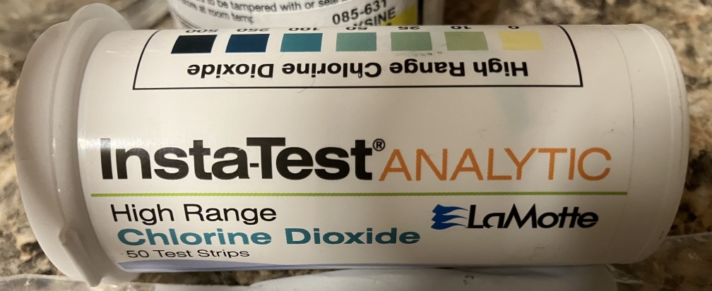 Does anyone have advice on high range test strips for testing the ppm of CL02 in the distilled water preparation. I am new at this and need more LaMotte strips but they are hard to find. So I have ordered from another company: ITS Waterworks. Hope they are accurate. Don't want to overdose my cat. Thanks